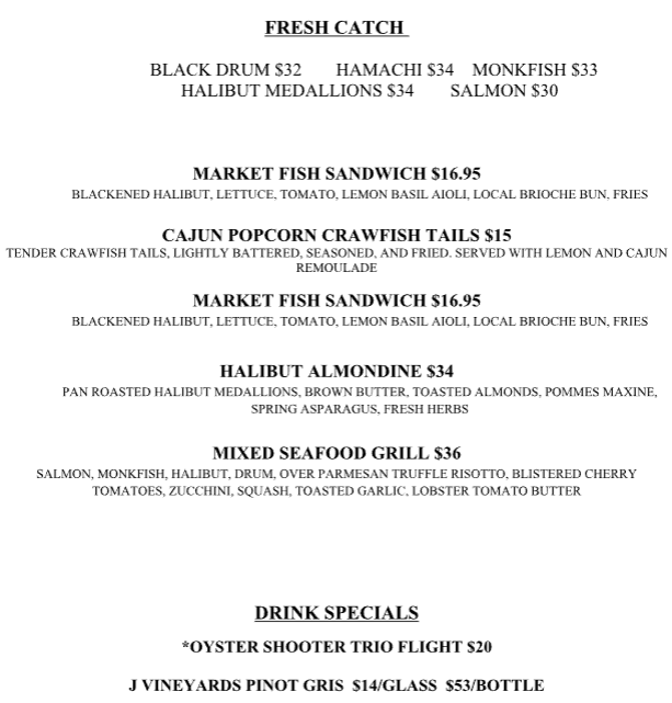 Fish and preparation change daily. See chef's special menu for today’s selection, fries
